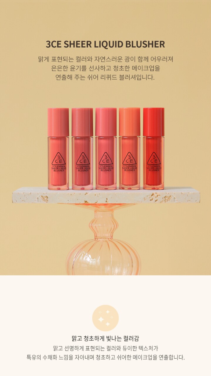 3CE 쉬어 리퀴드 블러셔 3g / 17,000원